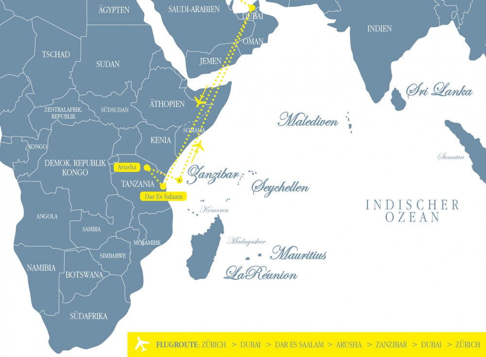 Entdecken Sie die pulsierende Millionenmetropole Dubai, die verschiedensten Erlebnis-Safari-Destinationen in Tanzani, sowie einem entspannenden Urlaubsabschluss auf Zanzibar. Die perfekte Kombination aus Erlebnismomenten und entspannender Stranderholung.
